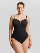 BareContour Swimsuit is a strapless one-piece shapewear swimsuit designed to sculpt the tummy while enhancing the bust with a bold U-wire neckline. The built-in shaping mesh smooths and tightens body curves for a flattering, contoured silhouette. Anti-slip silicone elastic along the neckline ensures a secure, stay-put fit, while removable bra pads provide adjustable support and easy care. Structured yet flexible, it delivers confident shaping for beach and poolside wear.