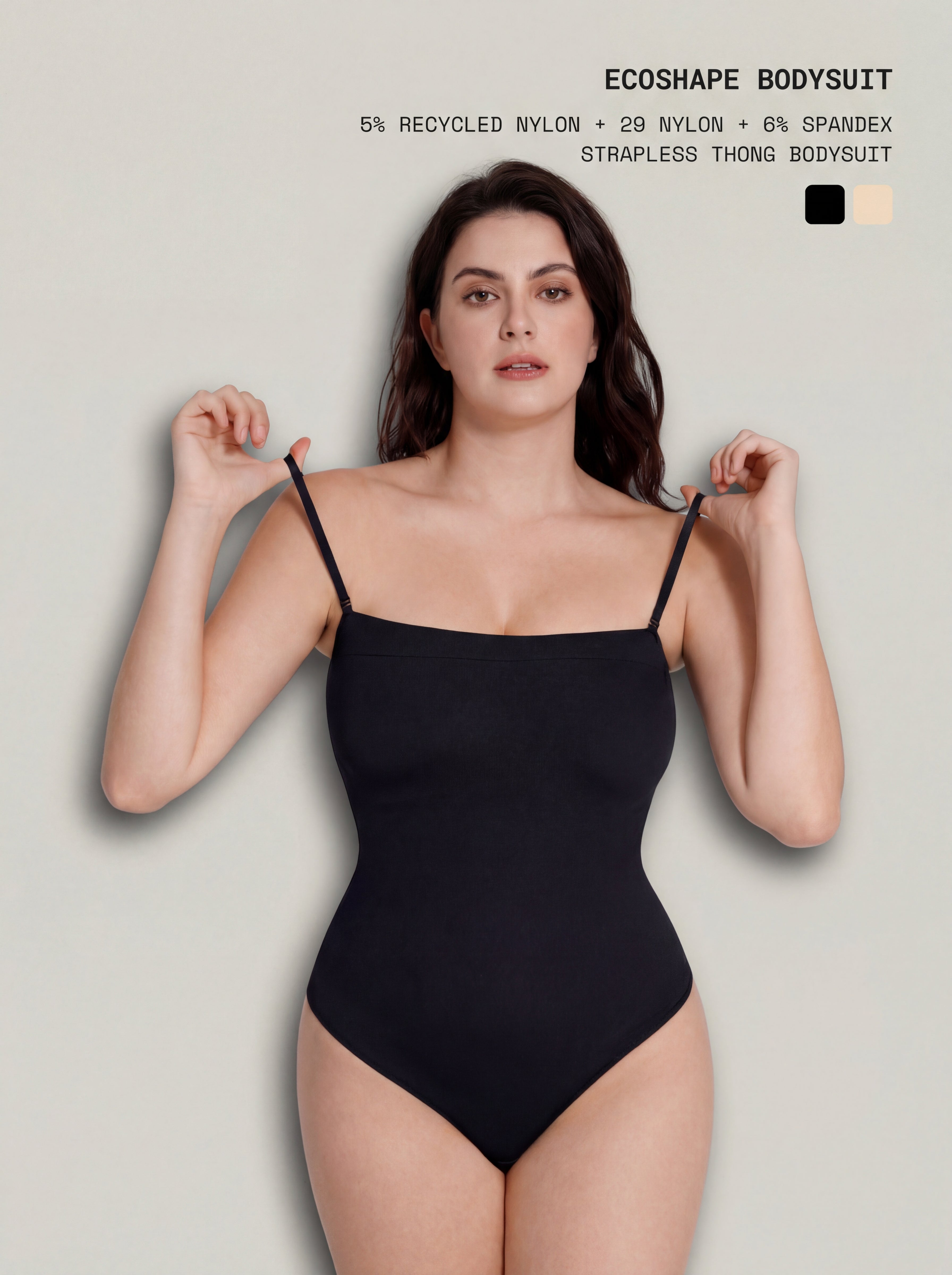 The EcoShape Bodysuit is a sleek, eco-conscious essential designed to sculpt, smooth, and support without sacrificing comfort. Made from recycled materials, this versatile bodysuit features removable straps for multiple styling options and a breathable, skin-friendly feel you can wear all day. Perfect on its own or layered under dresses, it delivers subtle tummy control with a seamless, barely-there look.