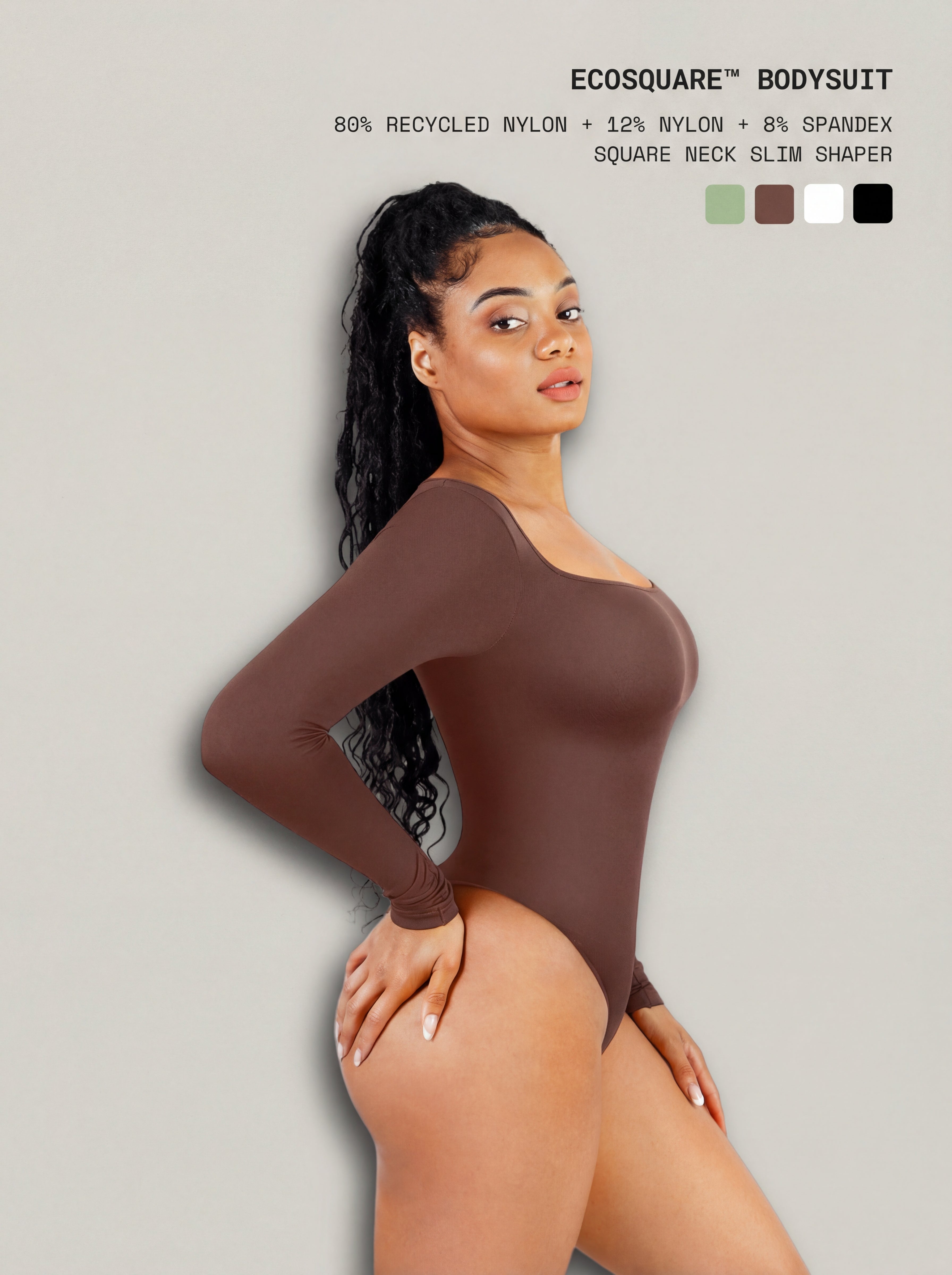 The EcoSquare™ Bodysuit smooths my waist beautifully without feeling tight, and I love that it’s made with recycled fabric.