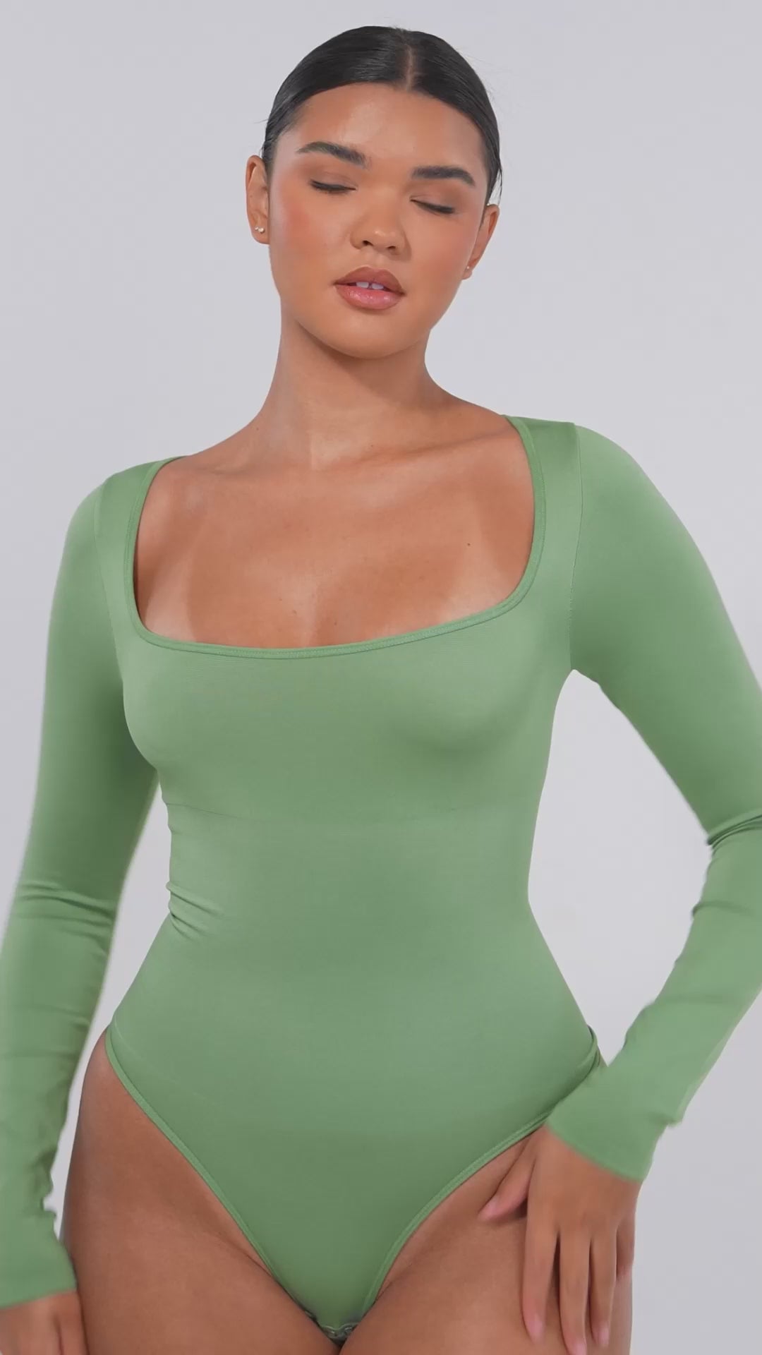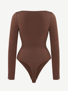 Slip into sleek, sustainable shaping with EcoSquare™ Bodysuit, a seamless long-sleeve essential crafted with recycled nylon for a smoother you and a lighter footprint. The retro square neckline frames the collarbones beautifully, while a tighter-woven waist panel delivers 360° control that hugs and defines without feeling restrictive. Soft, stretchy compression moves with your body for all-day comfort and a polished, wear-anywhere finish. Complete with a thong back for zero lines and an adjustable double-row snap gusset for the perfect length.