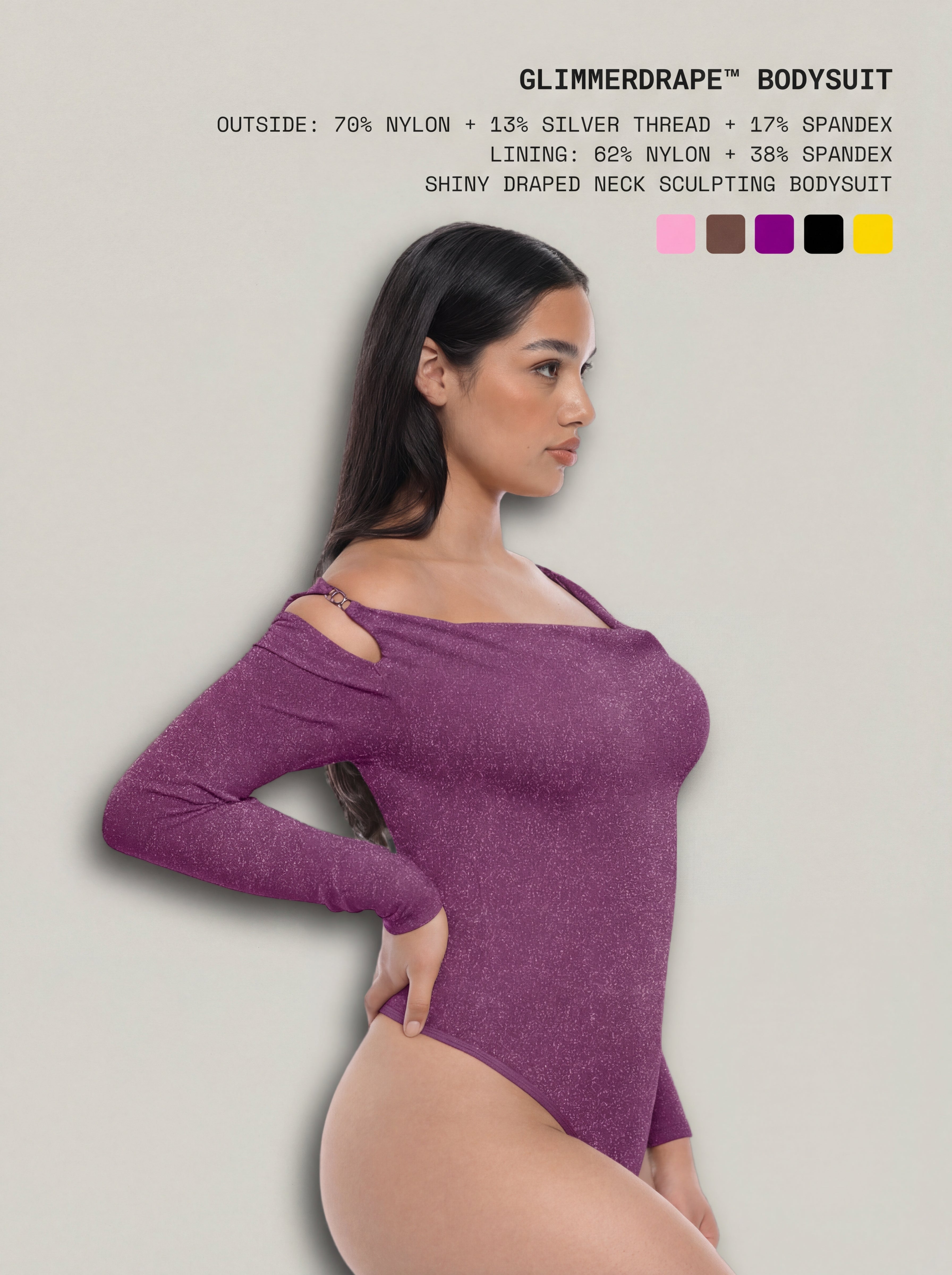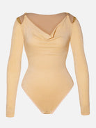 The GlimmerDrape™ Bodysuit gives me a snatched waist and that gorgeous glow—so luxe and easy to wear braless