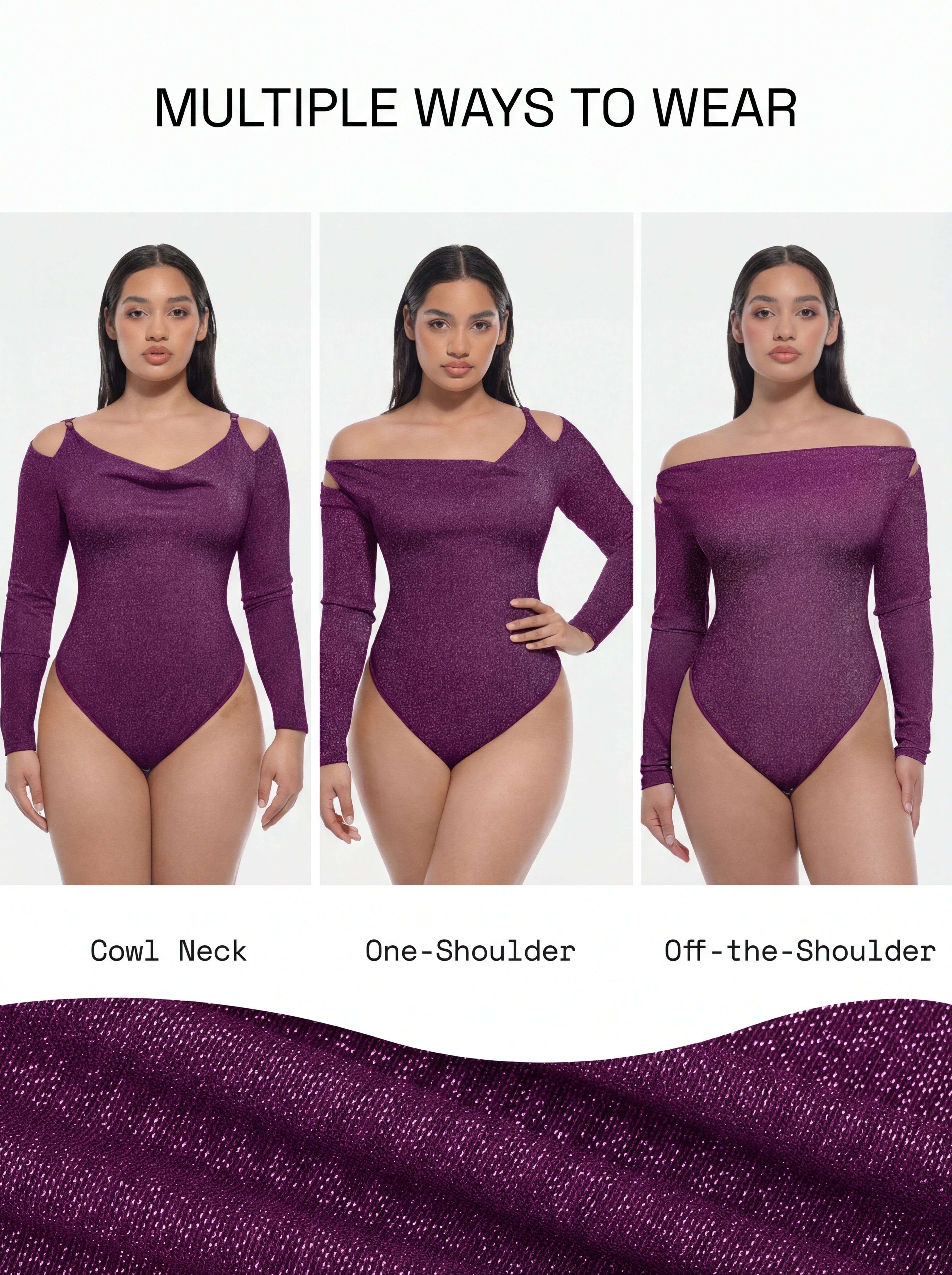 Step into your main-character moment with GlimmerDrape™ Bodysuit, a luminous, body-contouring essential made to be seen. The elegant U-shaped draped neckline flatters the chest with a soft, sensual sweep, while the built-in shaping mesh smooths your waist for a sleek, refined silhouette. Finished with a chic shoulder buckle detail and an all-in-one, bra-free design, it delivers polish without the layering. From dinners to date nights, it’s the kind of glow that turns heads—effortlessly.