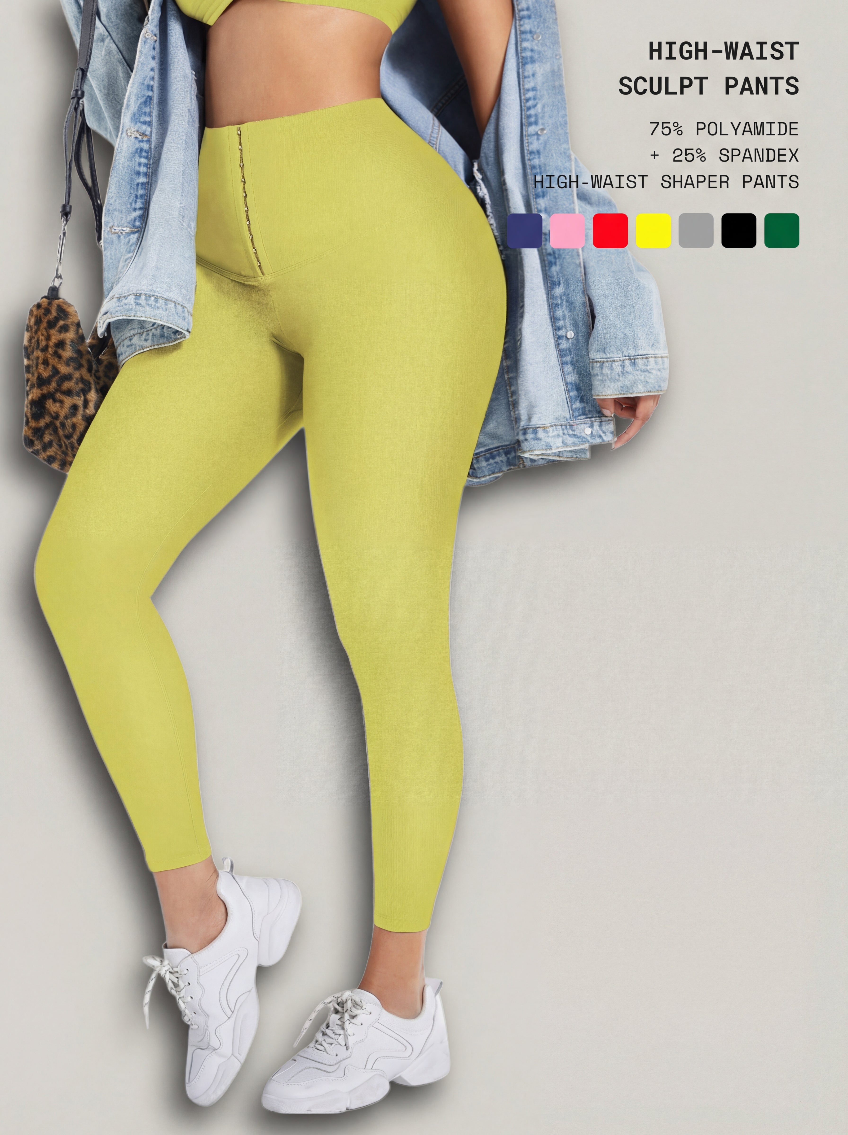 The High-Waist Sculpt Pants are full-length shapewear leggings designed to deliver adjustable tummy control, leg smoothing, and butt lifting in one streamlined silhouette. Featuring a hook-and-eye closure at the abdomen, these pants allow light to moderate compression based on your comfort needs. Made from breathable, stretch-infused fabric, they provide everyday support while staying flexible enough for workouts, casual wear, or active lifestyles.