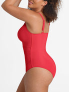 Elegant, sculpting, and designed to flatter, the LuxeRuche™ Swimwear is a refined one-piece that combines shaping support with elevated style. Featuring built-in waist-shaping mesh and soft ruching, this swimsuit smooths the midsection while enhancing natural curves for a confident silhouette. The deep V-neckline with a chic metal ring detail adds a touch of luxury, while wide shoulder straps and removable pads provide secure, comfortable support.