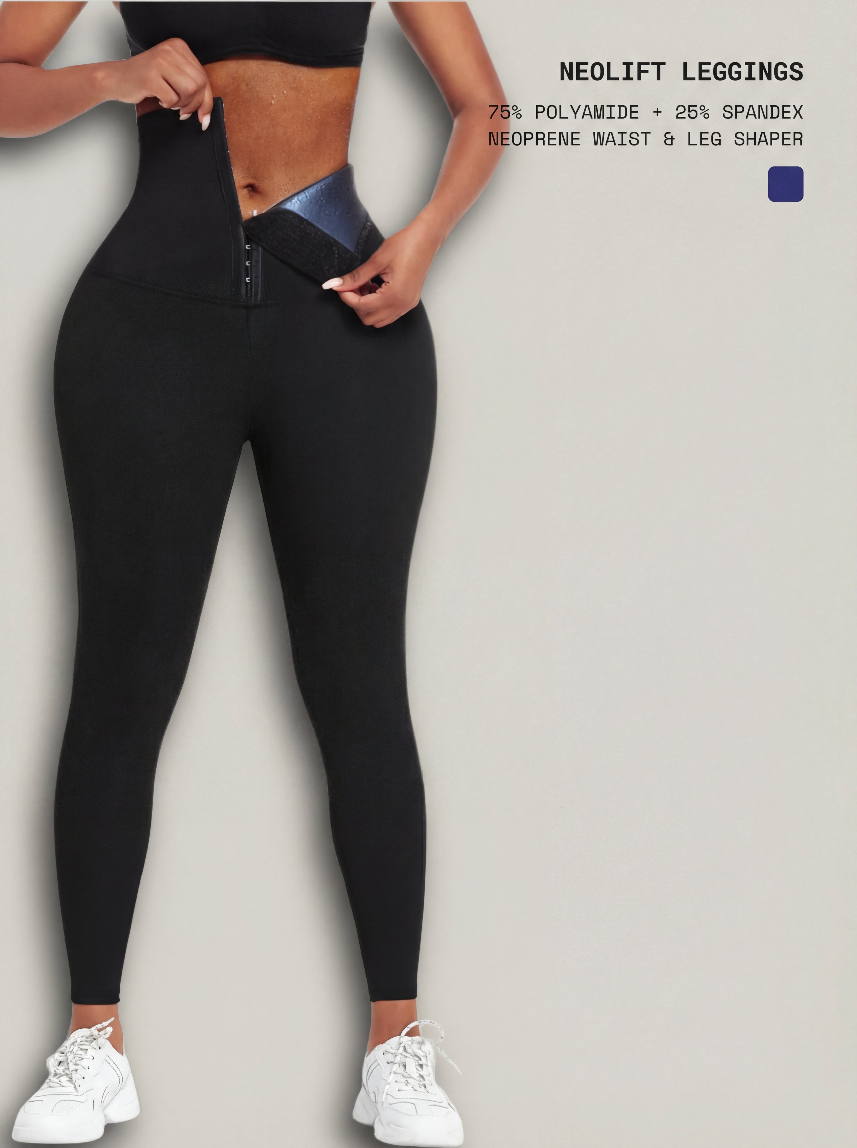 NeoLift Leggings are high-waisted, curve-sculpting leggings designed to snatch the waist, smooth the tummy, and lift the booty with a sleek, confidence-boosting fit. The adjustable 3-row hook-and-eye waistband lets you customize compression, while the heat fabric waist panel is made to increase sweat during movement for that extra “worked-in” feel. Finished with an M-shaped booty seam and smooth, chafe-reducing stitching, these leggings hug your shape while staying comfortable for workouts or everyday wear.