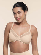 Refined, supportive, and effortlessly sensual, NoirVeil Bra is designed to provide natural shaping with a barely-there feel. Crafted with triple-layer mesh fabric, it delivers enhanced lift and stability while remaining soft and breathable against the skin. The unlined underwire construction offers full coverage without added bulk, creating a smooth, flattering silhouette under everyday outfits. Finished with seamless edges and adjustable details, it’s the perfect balance of comfort, support, and understated allure.