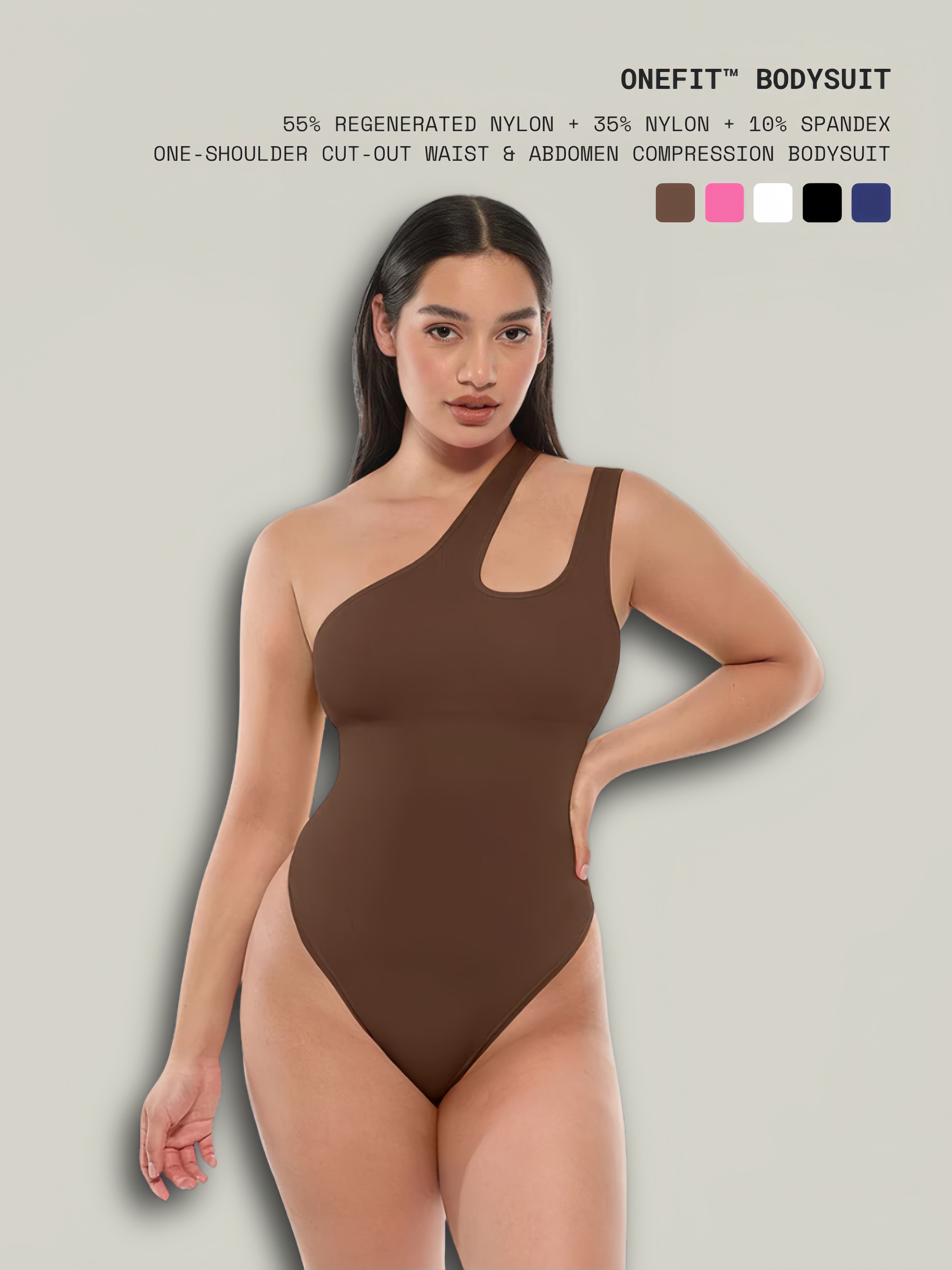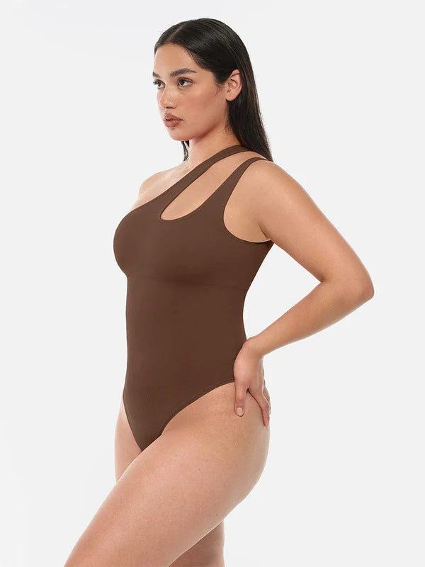Sculpting, modern, and unapologetically bold, OneFit™ Bodysuit is designed to contour the waist and midsection while making a striking style statement. The asymmetrical one-shoulder cut-out highlights the neckline and shoulders, while targeted compression smooths the midsection for a sleek, snatched silhouette. With a double-layer bust for bra-free wear and a thong finish for invisibility, it blends fashion-forward design with everyday shaping comfort.