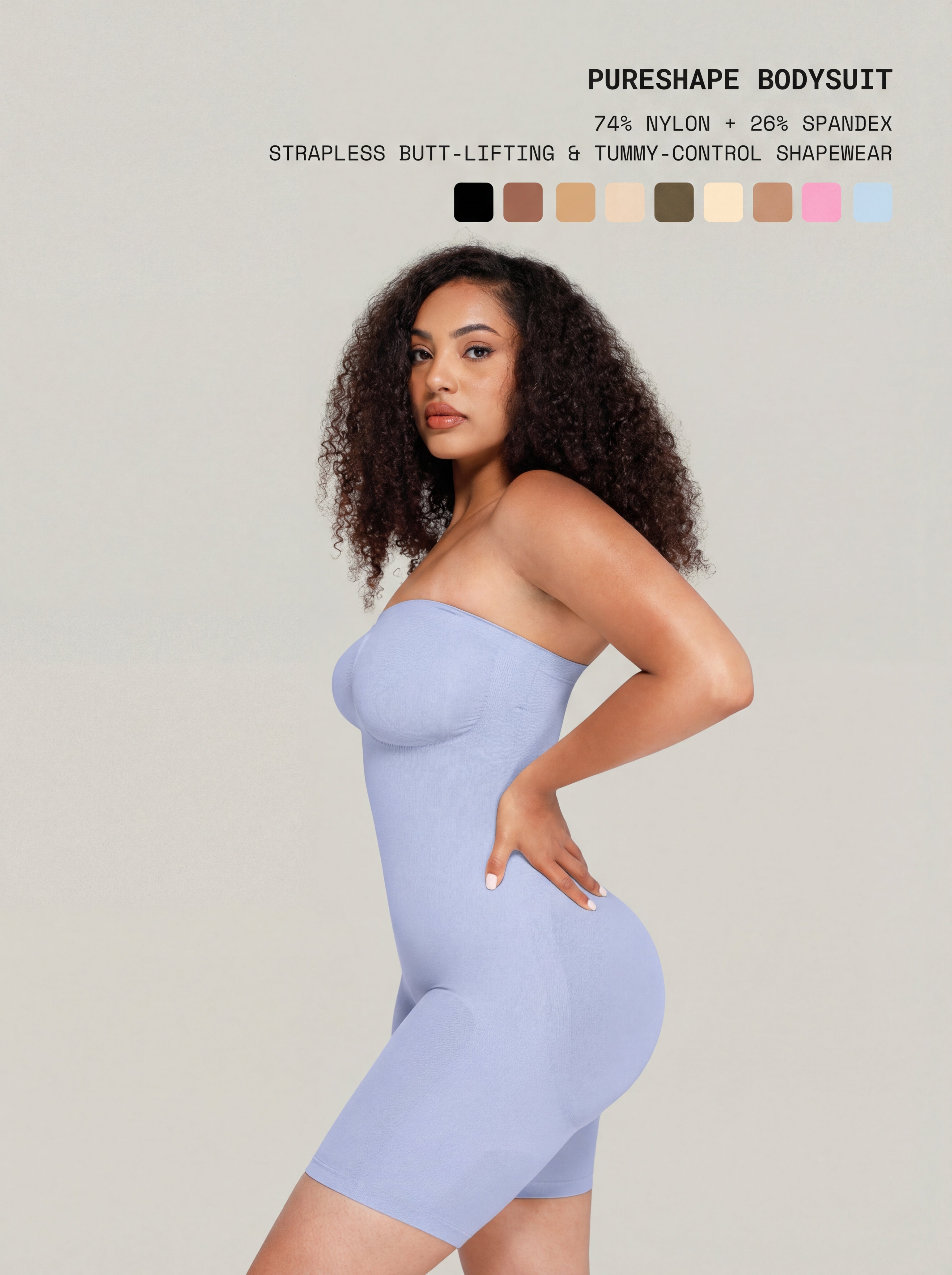 Sleek, supportive, and beautifully versatile, PureShape Bodysuit is a 4-in-1 convertible shaper designed to sculpt from bust to thigh. Featuring targeted compression zones, it smooths the waist and abdomen while lifting the butt for a naturally contoured silhouette. With strapless support, anti-slip detailing, and breathable fabric, it stays secure and invisible under any outfit.
