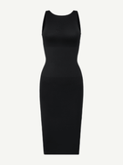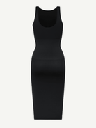 The ReVibe Dress is a seamless, eco-friendly shaping dress designed with a large U-back for a snatched waist and sculpted silhouette. Made with recycled nylon and elastic compression fabric, it delivers 360° waist and abdominal control while remaining breathable and comfortable for all-day wear. Built-in removable bra pads and subtle chest support allow for a bra-free, backless look that blends shaping with style.