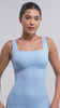 - Square neckline design enhances the collarbone and creates a refined, feminine neckline