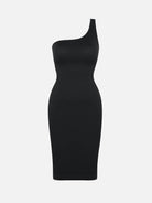 The SlantSnatch Dress is a seamless, eco-friendly shaping dress designed with a bold one-shoulder slanted neckline and powerful waist-trimming compression. Crafted from recycled materials and rib-textured elastic fabric, it delivers 360° waist and abdominal control while remaining soft, breathable, and comfortable for all-day wear. Built-in removable bra pads and subtle chest support allow for a confident, bra-free look that blends sculpting with standout style.