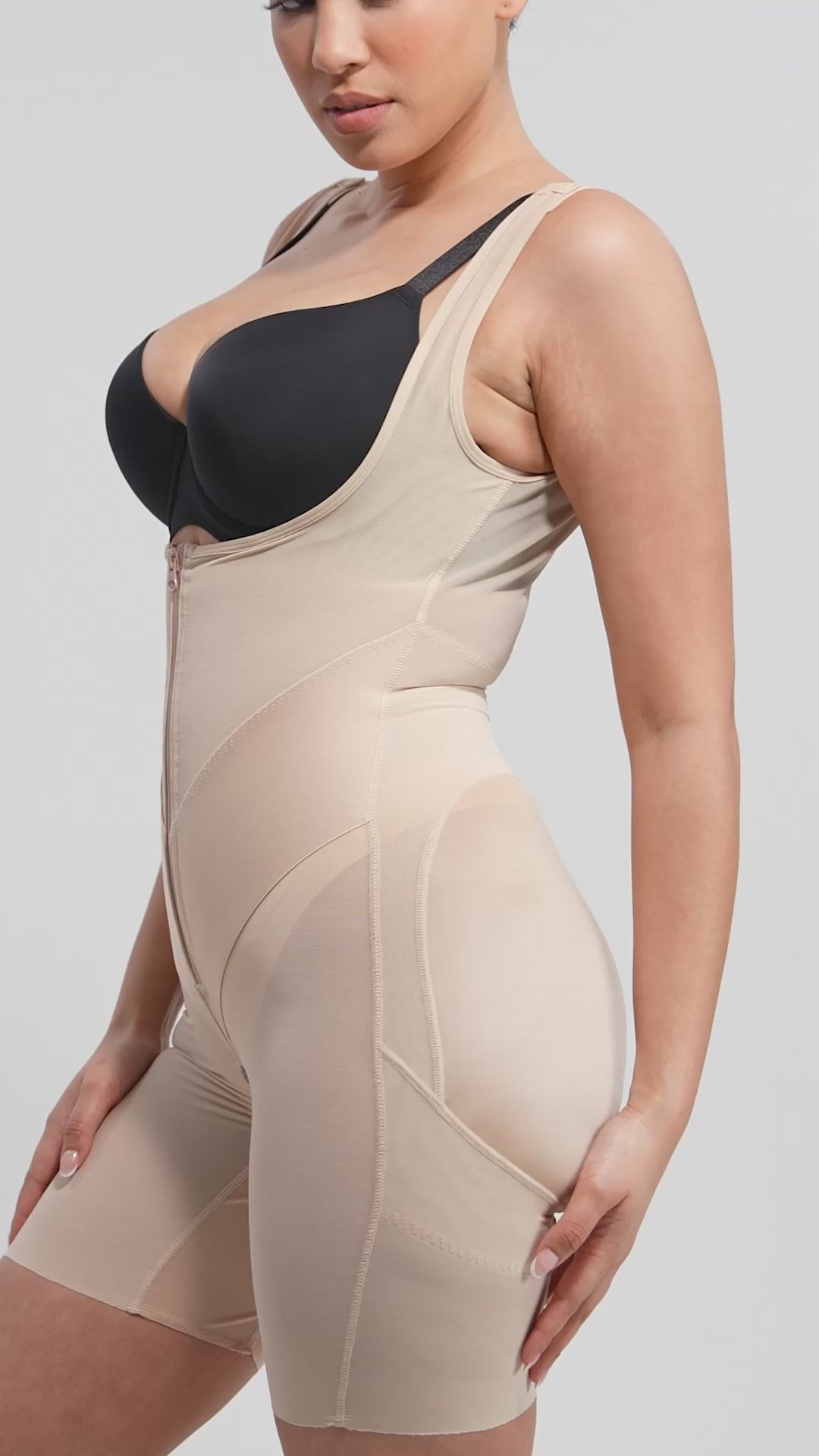 The U-Lift Zip Shaper™ is a high-compression, front-zip shaping bodysuit engineered to sculpt the waist, abdomen, bust, and hips in one streamlined design. Featuring a wide V-shaped elastic waistband, reinforced front closure, and breathable mesh zones, it delivers firm control without sacrificing comfort. Designed for daily wear and warm weather, it shapes from every angle while staying smooth and discreet under clothing.