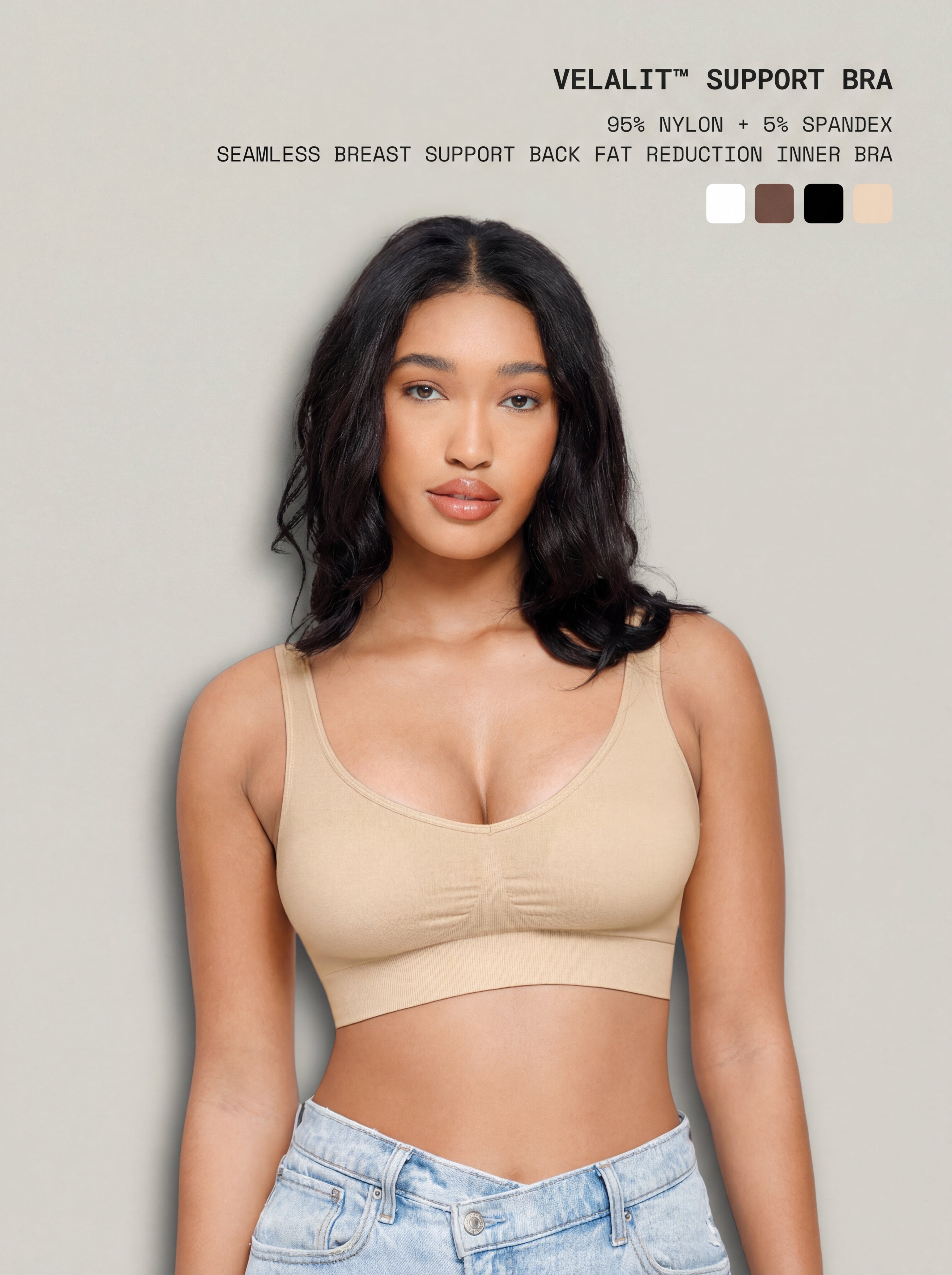 VelaLit™ Support Bra gives me a beautiful lift and smooth back without any bulk—it feels secure and flattering all day.
