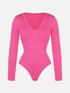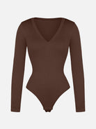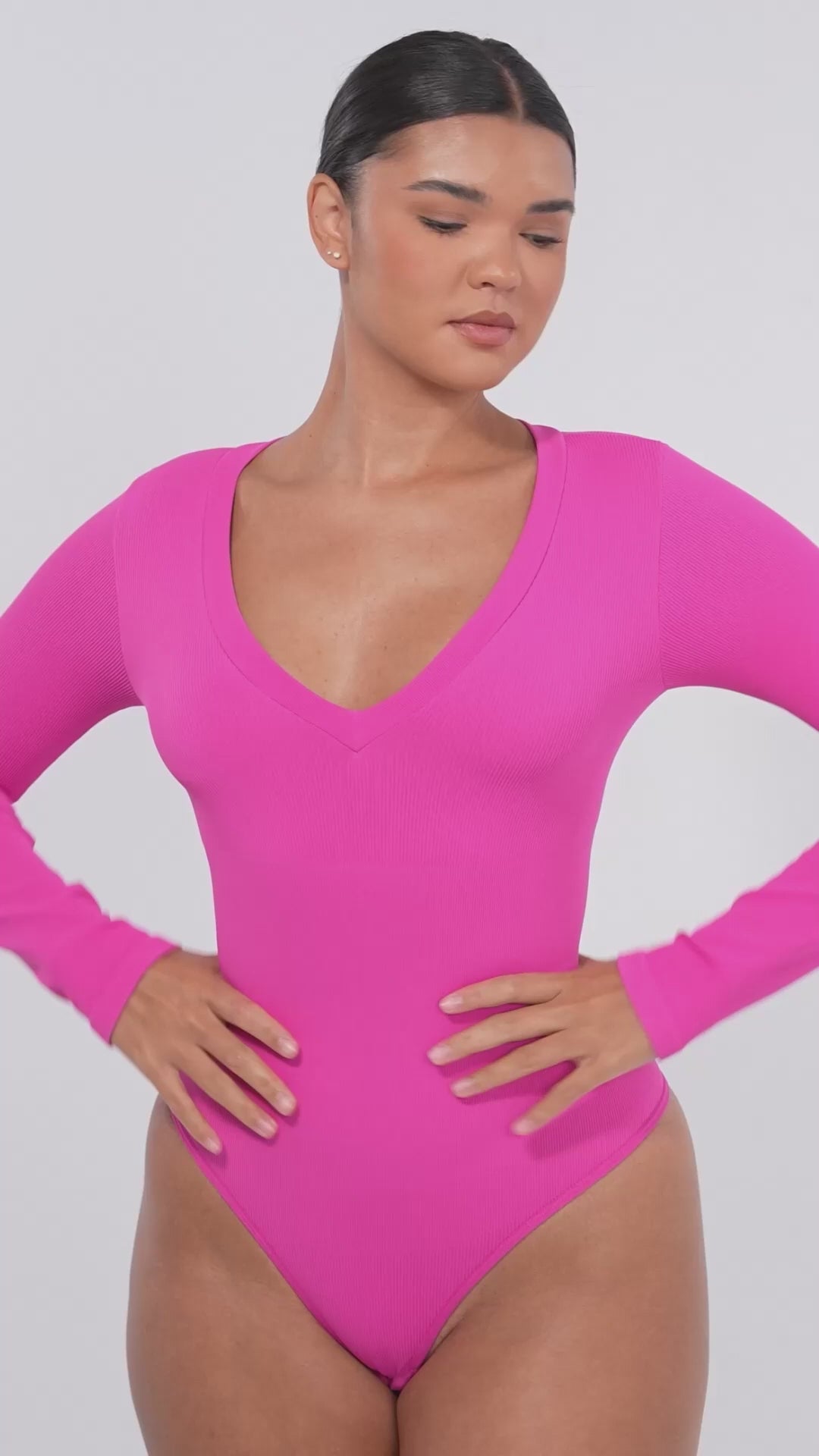 Meet VividV™ Bodysuit, the sleek long-sleeve staple that smooths, shapes, and elevates every outfit. A deep V neckline elongates the neck and frames the décolletage, while a tighter-knit waist zone supports the tummy for a more sculpted silhouette. The soft rib twill texture feels luxe and comfortable with high stretch that gently streamlines the arms. Finished with a thong back and hidden snap gusset for a seamless look under everything.