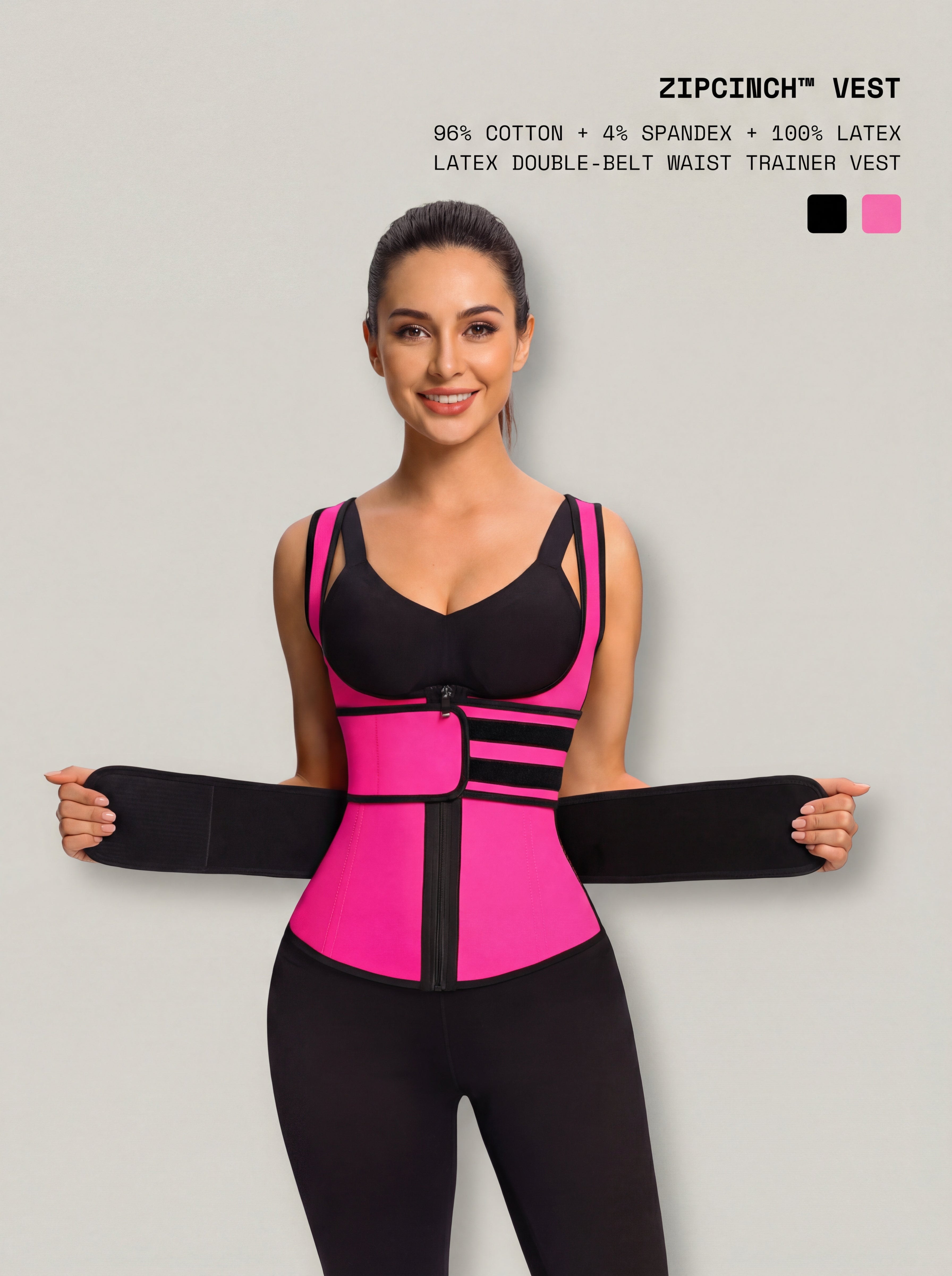 ZipCinch™ Vest is your high-compression shaping essential designed to sculpt the waist and smooth the tummy with a sleek, workout-ready fit. Powered by a latex core, it delivers a confident cinch while the vest silhouette adds an anchored, secure feel through movement. A strong zipper closure keeps the waist hugged close, while double belts let you dial in your ideal level of control. Finished with soft cotton lining, it stays supportive, comfortable, and beautifully streamlined.